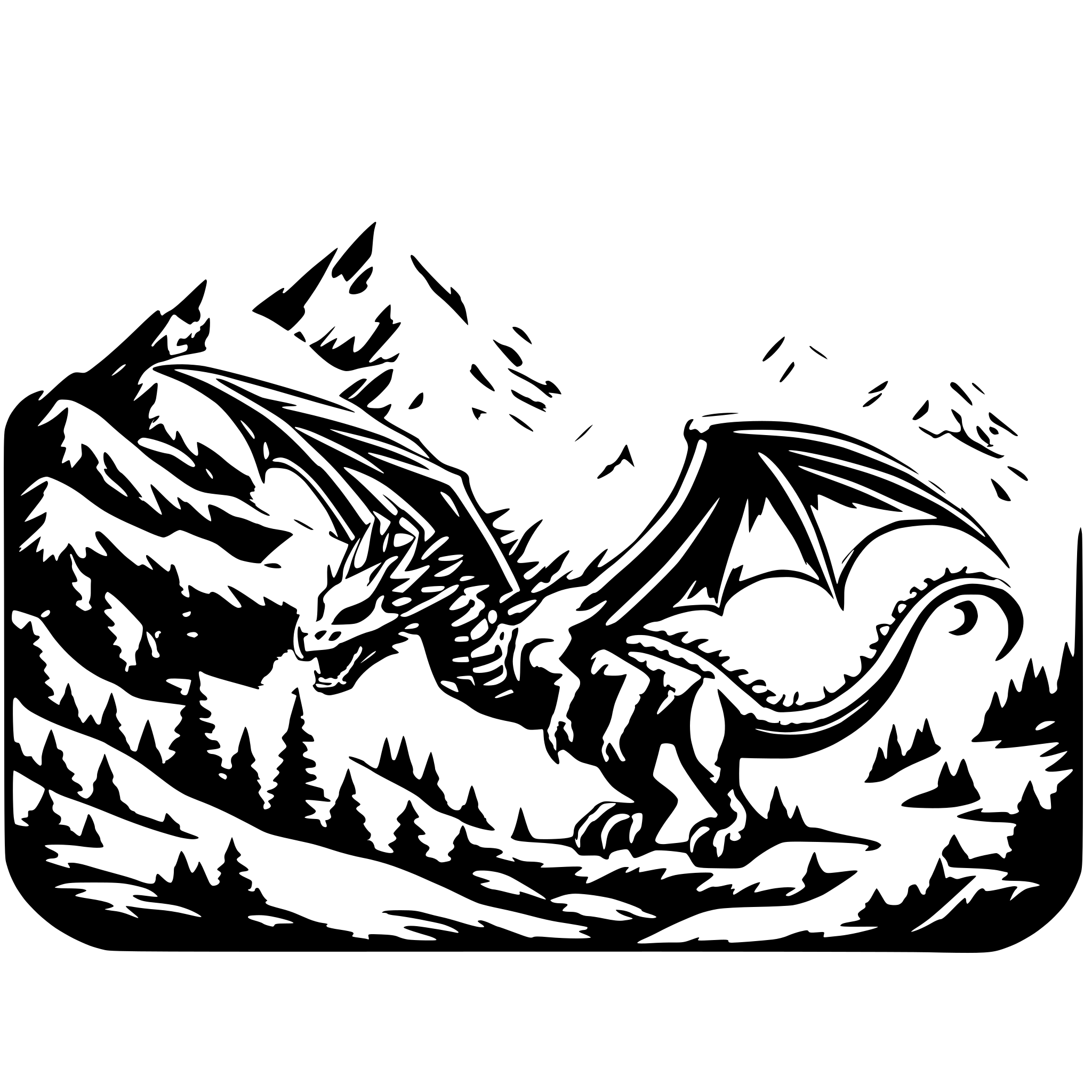 SVG for prompt "flying dragon above mountains"