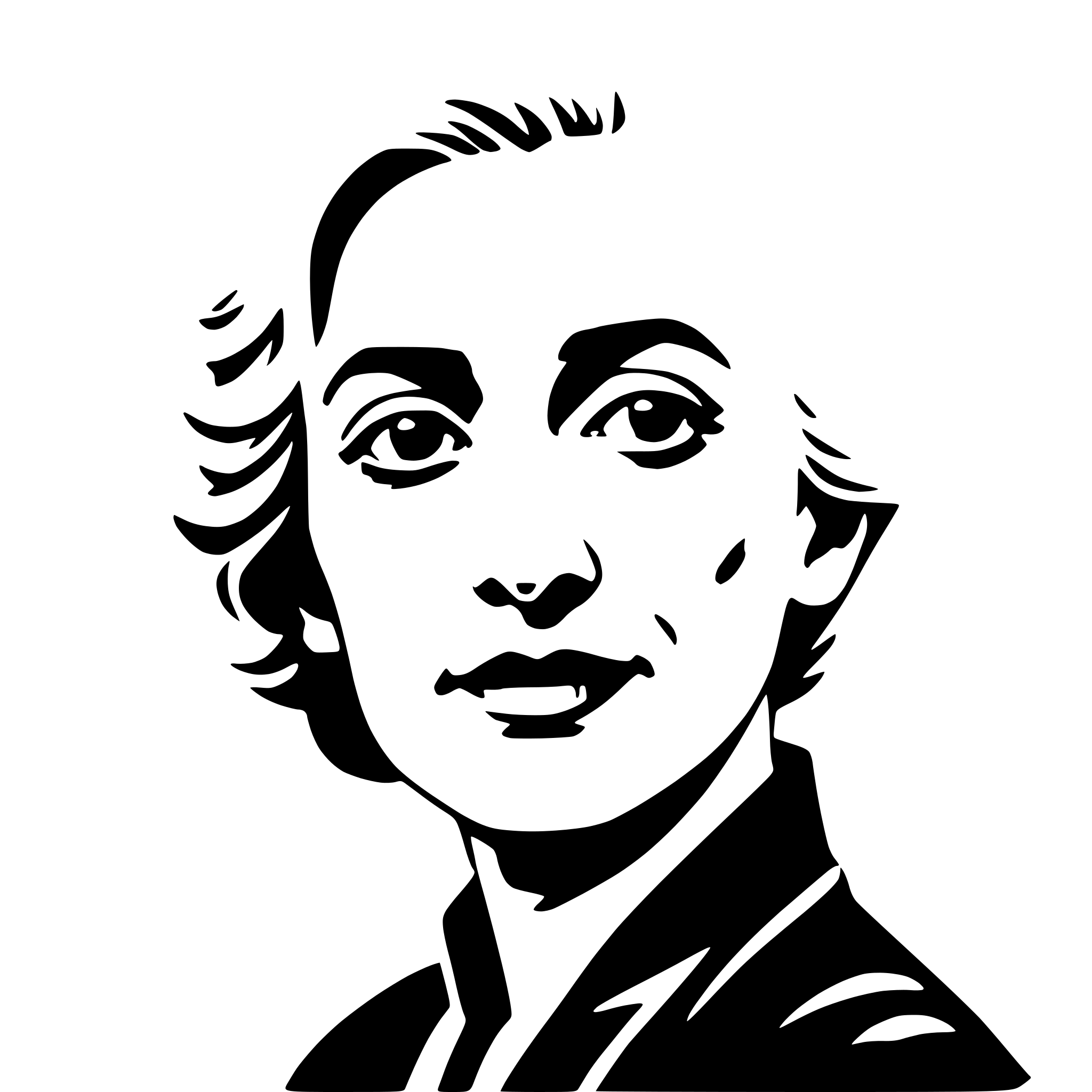 Description: The SVG is a black and white vector illustration of a person's profile. The person appears to be a woman with short, wavy hair, and she is looking slightly to her right. She has a neutral expression with her mouth closed and her eyes looking directly ahead. The person is wearing what seems to be a dark top or jacket, and there is a hint of a collar or a lapel on the right side of the SVG. The style of the illustration is simplistic and stylized, with clean lines and minimal shading, which is typical for vector graphics.