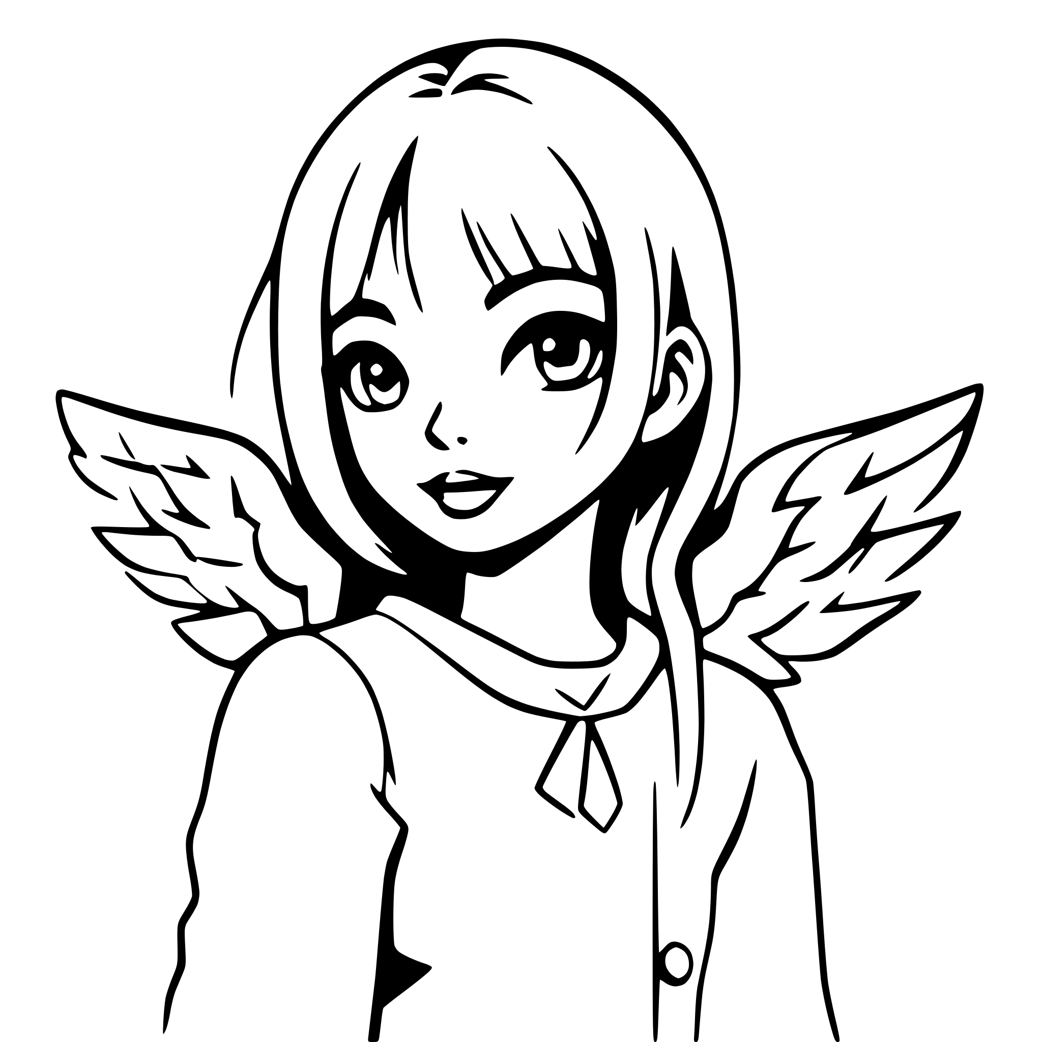 manga style SVG for prompt "girl with celestial wings"