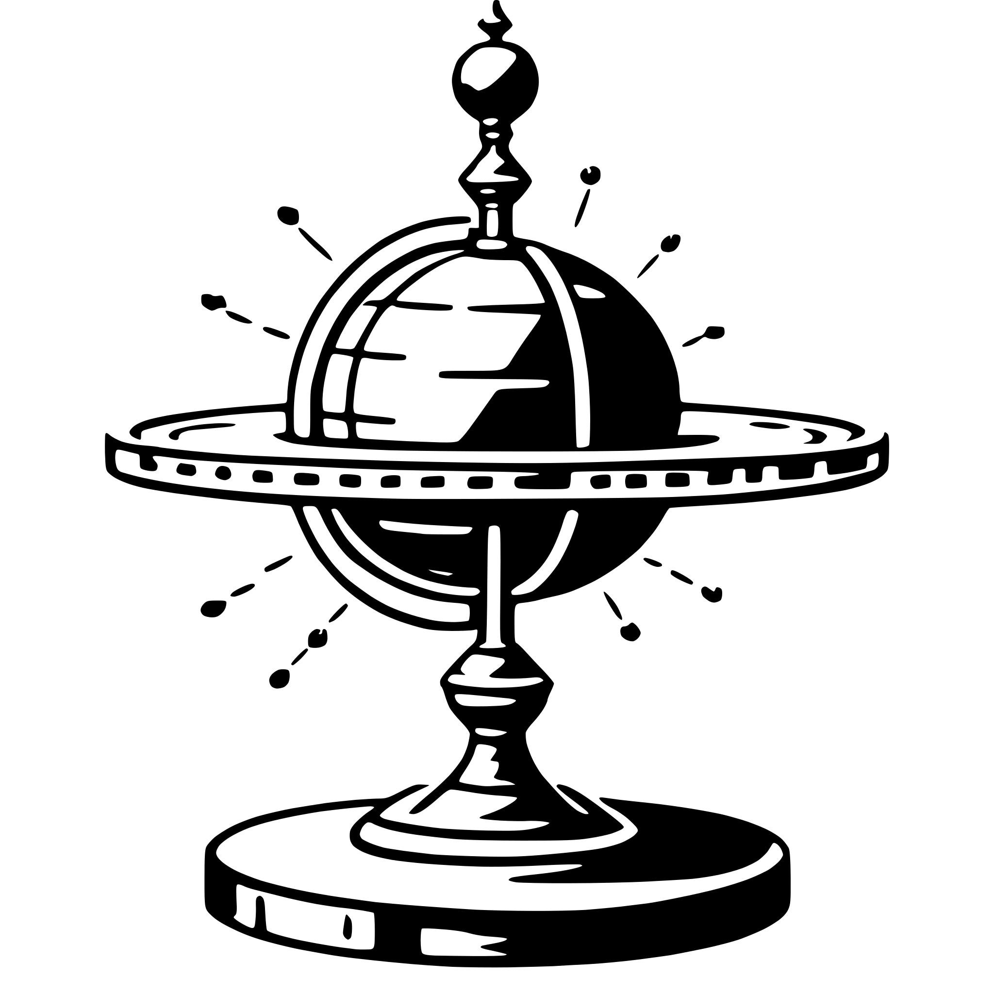 Description: The SVG depicts a stylized globe on a stand, with rays emanating from the top of the globe, suggesting a sun or light source. The globe is detailed with latitude and longitude lines, and the stand has a circular base with a small, pointed foot at the bottom. The rays are depicted as lines with small dots at the ends, giving the impression of light or energy emanating from the globe. The overall style is reminiscent of a classic scientific illustration.